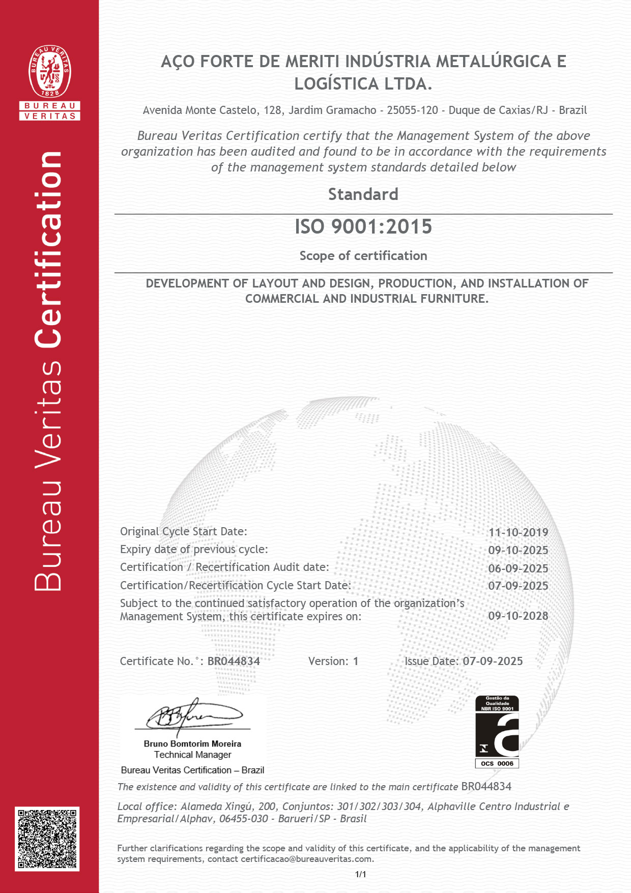 A aquisição da certificação demonstra que nossa empresa é séria e comprometida, além de seguir princípios internacionalmente reconhecidos. Adiciona a seu cotidiano o valor da melhoria contínua de processos e pessoas, ações que começam internamente e refletem em nossos resultados e principalmente na satisfação de nossos clientes.